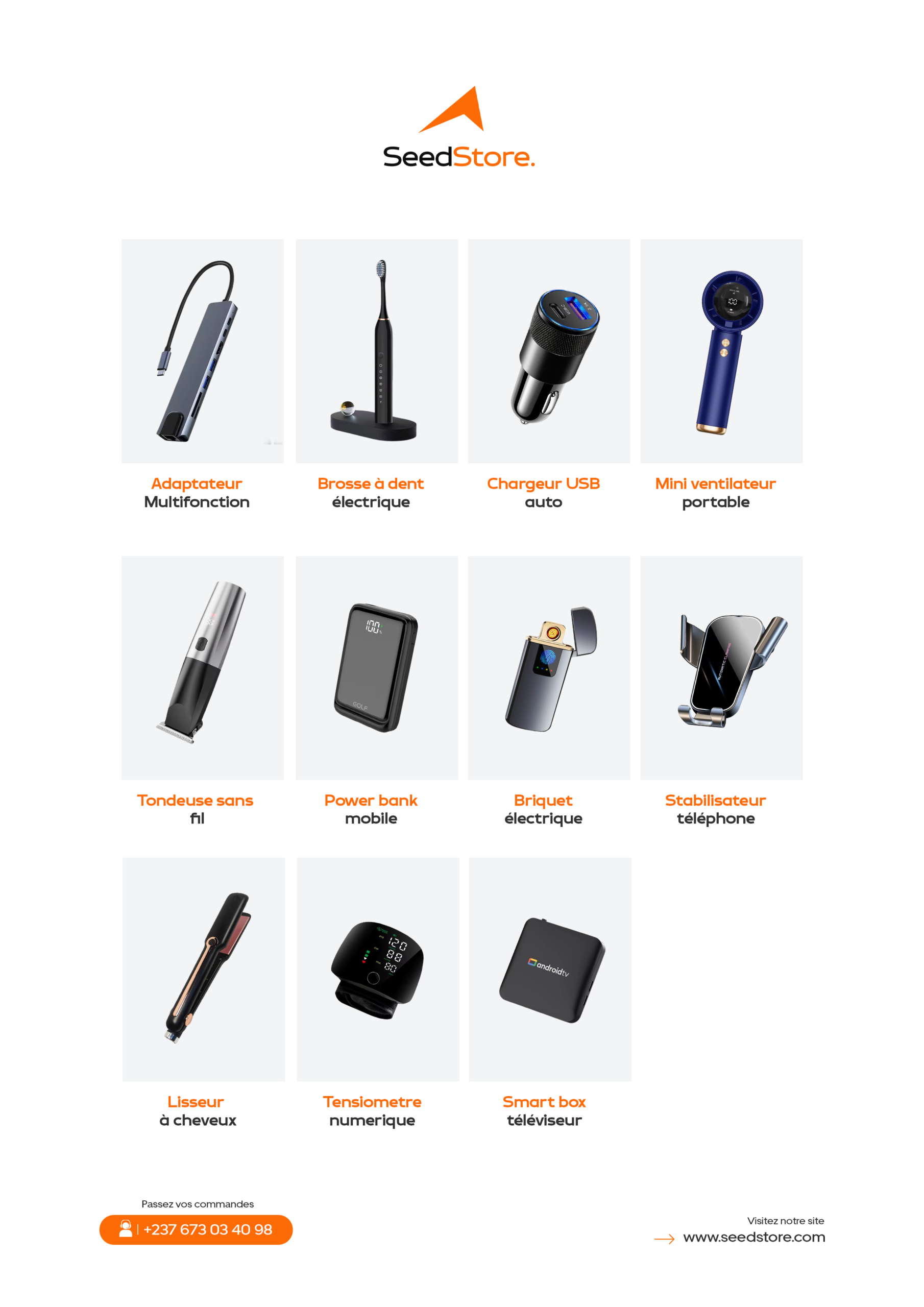 SeedStore, le coin pour vos accessoires électroniques à bon prix. Nous croyons que chaque africain mérite d'avoir accès aux dernières innovations technologiques, aux produits de beauté premium, aux accessoires lifestyle tendance, et bien plus encore, sans compromis sur la qualité ni sur le prix.
